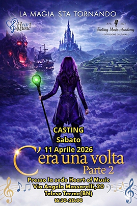 Le audizioni si terranno nella sede di "Heart of Music" associazione musicale che fa riferimento maestra di canto Valentina Pellecchia, in via Angelo Massarelli, dalle 16.30 alle 20.00.