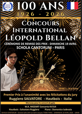 Domenica prossima, 19 aprile, il giovane oboista di Airola, Salvatore Ruggiero, si esibirà a Parigi in occasione della cerimonia di chiusura del Concorso Internazionale "Léopold Bellan", giunto alla centesima edizione, in programma alla Schola Cantorum.