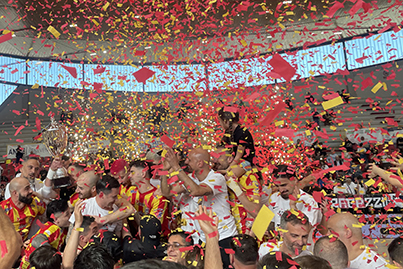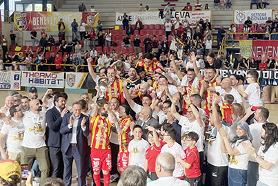 In un PalaTedeschi gremito, il Benevento 5 ha concluso una stagione che rimarrà nella storia della società e della città, culminata con il doppio successo sia in campionato (con la conseguente promozione in Serie A), sia con la vittoria della Coppa Italia di A2 Elite.