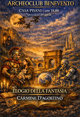 A parlarne sarà Carmine D'Agostino, che così ha presentato il suo intervento: "Non semplice evasione ma energia trasformativa, capace di rompere i confini del pensiero e di rinnovare ciò che sappiamo, la fantasia è cosa diversa dall'immaginazione.