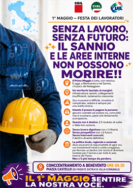 Durante la conferenza stampa, saranno illustrate le motivazioni dell'iniziativa del Primo Maggio e verrà posto al centro il tema del futuro del Sannio e delle aree interne: lavoro dignitoso, investimenti, servizi pubblici, sanità, scuola, sicurezza nei luoghi di lavoro, contrasto allo spopolamento e piena valorizzazione delle aree interne.