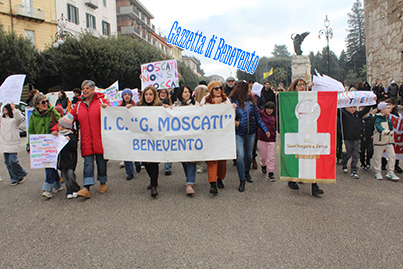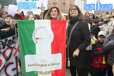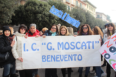 La manifestazione, con partecipanti, intorno a 200 persone, riuniti a piazza Castello, è andata dunque avanti con lo slogan urlato dai presenti e guidato con megafono, Mastella ascolta la scuola non si tocca.