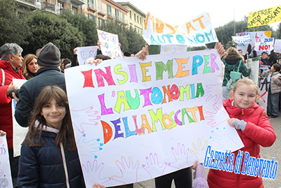 Stavolta sono state le mamme, i piccoli studenti (ovviamente istruiti a tanto e questo avviene sia nel bene, quando inneggiano al sindaco, che nel male) e comunque l'intera famiglia scolastica degli Istituti Comprensivi "Sant'Angelo a Sasso" e "Moscati", Istituti che sono stati accorpati.