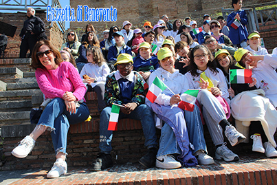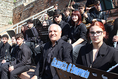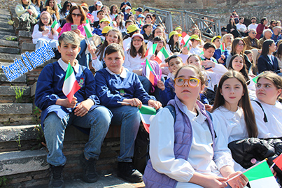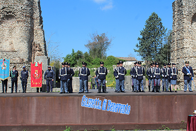 La manifestazione al Teatro Romano si è conclusa con la consegna degli attestati di merito al personale che si è particolarmente distinto e la esecuzione da parte degli allievi del Liceo "Guacci", dell'Inno nazionale.