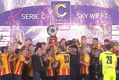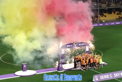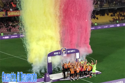 Le emozioni, però, sono giunte tutte al termine della partita con la festa in campo e la consegna della Coppa per la vittoria del campionato che il presidente della Lega Pro, Matteo Marani, ha consegnato nelle mani del capitano giallorosso, Mattia Maita, il quale l'ha condivisa insieme con i suoi compagni di squadra e il presidente, Oreste Vigorito, il quale non ha affatto accusato il passare degli anni e, come in occasione delle precedenti promozioni, ha voluto compiere il sempre suggestivo giro del campo per abbracciare idealmente i suoi tifosi e la sua città.