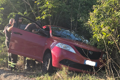 Un'auto della Polizia Municipale di passaggio su quella strada, con il tenente Parente, ha notato l'incidente ed è prontamente intervenuta per evitare che la vettura continuasse a scivolare nella scarpata con il ferito a bordo.
