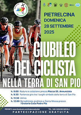 La giornata culminerà con due momenti di profonda spiritualità: la Benedizione dei Ciclisti e delle Biciclette, invocando protezione e buona strada per tutti i partecipanti e la Messa Solenne all'oratorio Casa Padre Pio, che rappresenterà il culmine dell’esperienza giubilare e l'ottenimento dell’Indulgenza Plenaria.