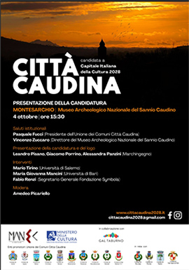 Si terrà sabato prossimo, 4 ottobre, alle 15.30, nel Museo Archeologico Nazionale del Sannio Caudino, l'evento di presentazione della candidatura della Città Caudina a Capitale Italiana della Cultura 2028.