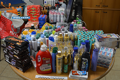 La merce, del valore complessivo di circa 2.000 euro, è stata restituita ai responsabili dei supermercati.