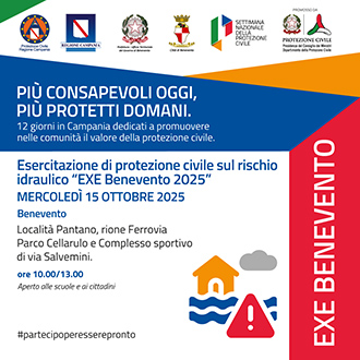 "Exe Benevento", organizzata dalla Regione Campania, dalla Prefettura e dal Comune di Benevento, in programma mercoledì prossimo, è una sperimentazione logistico-operativa del sistema di protezione civile che coinvolgerà anche gli studenti.