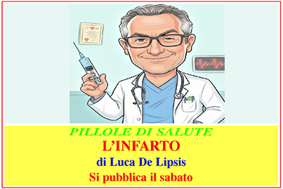 Luca De Lipsis dismette i panni del narratore di successo e rimette quelli, a lui oramai piu' che familiari, del medico. A partire da oggi alimentera' con la sua lunga esperienza di medico ospedaliero, la rubrica settimanale che ha voluto chiamare "Pillole di salute". Si comincia parlando di Infarto