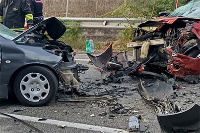 Un impatto frontale tra due autovetture si e' verificato nel pomeriggio sulla Strada Statale Appia
