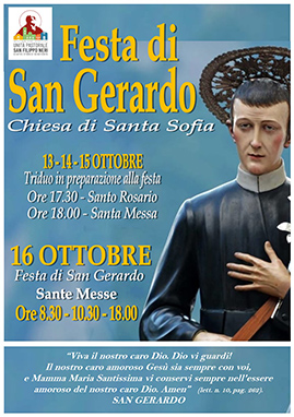 Giovedì 16, giorno liturgico di San Gerardo Maiella, sarà possibile venerare il Santo per l'intera giornata.