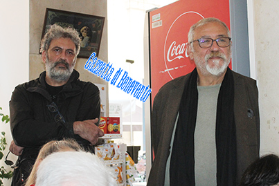 La parola è quindi passata al direttore artistico, Gennaro Del Piano (nella terza foto in basso è sinistra ed a destra è Francesco Tuzio), dalla sconfinata preparazione musicale, sopratutto nel segmento napoletano, ed a cui è stato affidato l'evento da proporre al pubblico, egli ci ha detto che è questo il tentativo di porgere un giusto tributo agli "Squallor" ed alla loro attività durata una ventina d'anni e che ha caratterizzato non solo il sodalizio musicale ma anche sancito la profonda amicizia tra loro.