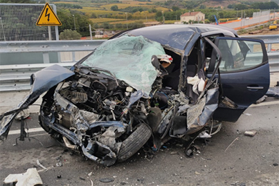Ad avere la peggio e' stato il conducente dell'autovettura che e' rimasto incastrato tra le lamiere. Necessario l'intervento dei Vigili del Fuoco del Comando Provinciale per estrarlo