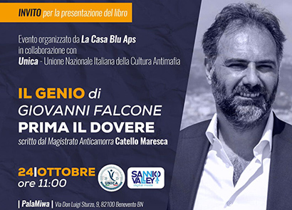 Venerdì prossimo, 24 ottobre, alle 11.00, al PalaMiwa, in via don Luigi Sturzo, ci sarà la presentazione del libro "Il Genio di Giovanni Falcone. Prima il dovere", con la presenza dell'autore, il magistrato anticamorra, Catello Maresca.