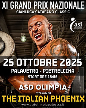 Al Palavetro di Pietrelcina si terrà sabato prossimo, 25 ottobre, con inizio alle 18.00, la XI edizione del Grand Prix Open di Body-Building e Fitness "The Italian Phoenix - Gianluca Catapano Classic".