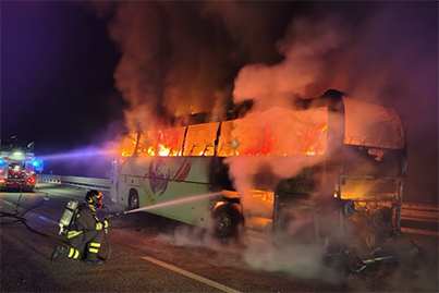 Attimi di apprensione per i passeggeri di un pullman di linea che stava effettuando il servizio sostitutivo delle Ferrovie dello Stato che ha preso fuoco mentre era in viaggio.