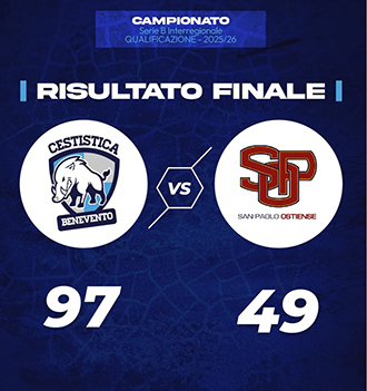 La Cestistica Benevento ha vinto, con il punteggio di 97-49, la prima gara stagionale nel campionato di Serie B Interregionale contro il San Paolo Ostiense, per una partita che è non stata mai in discussione.