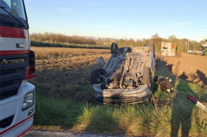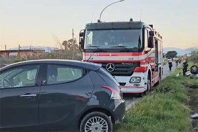 Proprio quest'ultima, all'interno della quale si trovavano due giovani trentenni, è stata quella che avuto la peggio poiché la stessa si è ribaltata ed è finita fuori strada.