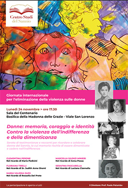 Per la Giornata Interazionale finalizzata all'eliminazione della violenza sulle donne il Centro Studi del Sannio ha organizzato una serata di testimonianze e racconti per ricordare e celebrare donne del Sannio la cui memoria rischia di essere dimenticata e cadere nell'indifferenza.