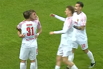 Dalla revisione emerge il fallo ma anche che lo stesso è avvenuto fuori dall'area così viene assegnata una punizione dal limite con cartellino giallo per l'esterno ex Bari e Cosenza.