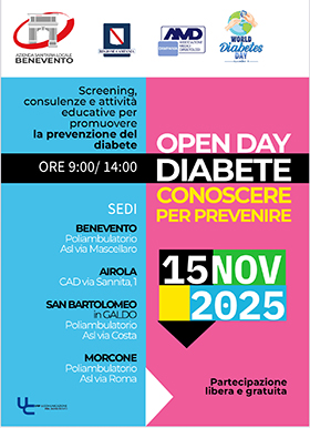In occasione della Giornata Mondiale del Diabete 2025, l'Asl di Benevento ha organizzato una giornata di Open Day dedicata alla prevenzione, diagnosi precoce e informazione sul diabete, con accesso libero e gratuito per tutti i cittadini.