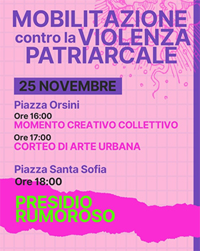 In seguito, alla fine del corteo, è in programma un presidio rumoroso a piazza Santa Sofia alle 18.00, "per far emergere quella che è la denuncia alla normalizzazione della violenza patriarcale che viviamo quotidianamente, portando le nostre esperienze, i nostri corpi e le nostre parole".