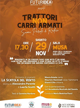 "Trattori, Non Carri Armati" si propone - si legge nella nota inviata alla Stampa - come un viaggio emotivo e culturale: ogni nota come un seme, ogni ritmo una preghiera, ogni storia un atto d’amore verso la terra e le sue memorie.