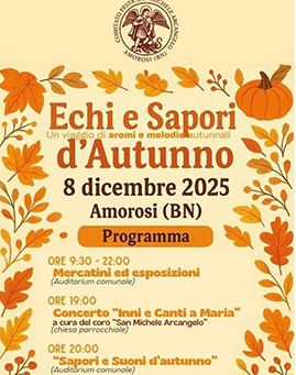 La comunità di Amorosi si prepara a vivere una giornata dedicata ai colori e ai profumi dell'autunno con l'evento "Echi e Sapori d'Autunno", in programma lunedì prossimo, 8 dicembre.