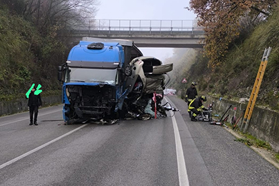 Scontro frontale lungo la Statale 372 "Telesina". Coinvolte una Fiat Brava e un camion. Muore un 22enne di Benevento