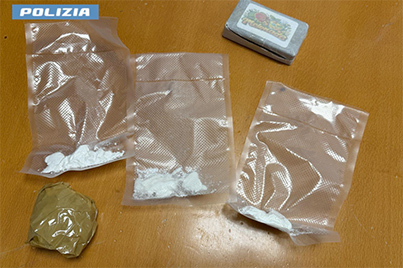 Gli operatori della Squadra Mobile hanno eseguito una perquisizione personale e domiciliare nei confronti dell'uomo, all'esito della quale e' stato rinvenuto un quantitativo di 55 grammi circa di cocaina, un panetto di hashish del peso di 100 grammi circa e la somma di circa 26.000 euro in banconote di vario taglio