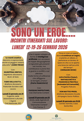 Tre incontri itineranti formativi si terranno nei lunedi' di gennaio sul tema del lavoro. Sono promossi dal Movimento Lavoratori di Azione Cattolica