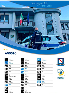 Il calendario 2026 della Scuola Regionale di Polizia locale, infatti, giunto alla XX edizione, appena pubblicato e presto prossimo ad essere inviato nei Comuni e nei Comandi di tutta la regione, "dedica" il mese di agosto alla Polizia Municipale di Limatola.