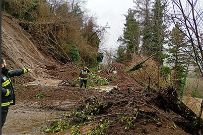 Sul posto sono giunti i Vigili del Fuoco (foto) per rimettere l'area in sicurezza ed eliminare i tanti alberi caduti sulla strada.