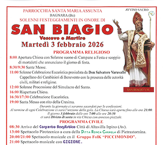 La comunità di Bagnara, frazione di Sant'Angelo a Cupolo, guidata dal parroco don Antonio Bonavita, si prepara a celebrare martedì prossimo, 3 febbraio, la memoria liturgica di San Biagio, vescovo e martire, particolarmente venerato come protettore della gola.