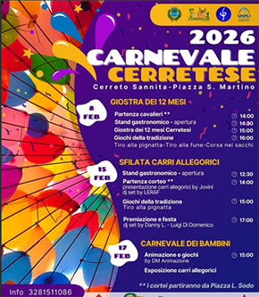 Dopo il successo delle scorse edizioni, la manifestazione tornerà ad animare Cerreto Sannita con un programma ricco che unisce folklore, spettacolo e l'attesa sfilata dei carri.
