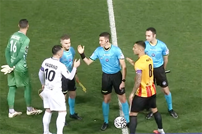 Dopo la revisione l'arbitro assegna la massima punizione ma il tecnico lucano, a sua volta, fa ritornare il direttore di gara a rivedere l'intera azione forse anche con l'intento di togliere concentrazione a chi lo avrebbe battuto.