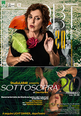 Ancora una messa in scena al Mulino Pacifico, il prossimo 20 febbraio, alle 20.30, con "Sottosopra" di Gea Martire, liberamente tratto da "Dicerie sui santi e altri malumori" di Davide Morganti con Gea Martire, Gae Maria Palumbo sax, regia di Stefano Amatucci, produzione studioLab48.