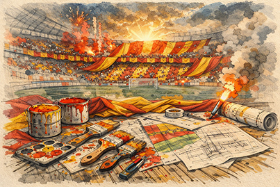 In occasione della chiusura del campionato, per l'ultima gara interna in programma allo Stadio "Ciro Vigorito", è in via di definizione una scenografia speciale, immaginata per accompagnare un momento simbolico e fortemente identitario per la Curva Sud e per l'intera città di Benevento.
