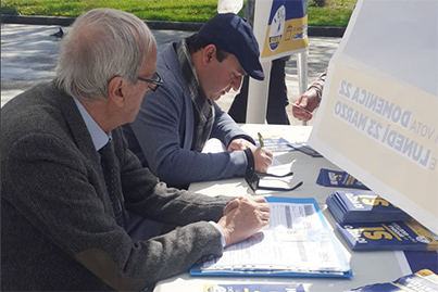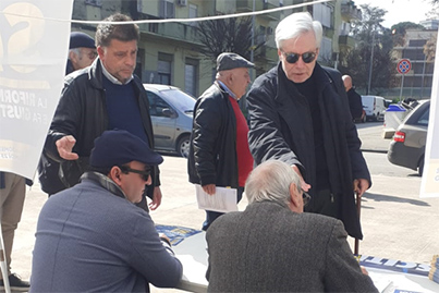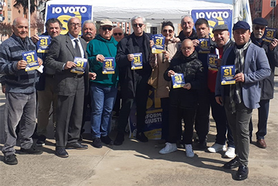 La piacevole circostanza, al di la' del fatto politico, e' che al gazebo si e' rivisto dopo mesi anche Luigi Bocchino, gia' coordinatore provinciale del partito ed oggi responsabile regionale delle "Aree Interne". E' in lenta ripresa dalla malattia che lo ha colpito. Per lui il Si' serve a dare piu' efficienza ed indipendenza alla magistratura