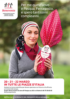 Per continuare a far crescere la ricerca il 20, 21 e 22 marzo prossimi, scegliendo le Uova di Pasqua Ail, con un contributo minimo di 15 euro, si sosterrà la lotta contro leucemie, linfomi e mieloma portando aiuto a tanti pazienti.