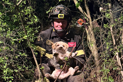 Intervento dei Vigili del Fuoco a San Nazzaro dove i caschi rossi sono stati impegnati nel salvataggio di quattro cuccioli di cane