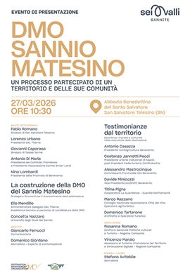 L'Abbazia di San Salvatore ha fatto da cornice a un momento storico per il turismo del territorio: La presentazione ufficiale della "Destination Management Organization" (Dmo) Sannio Matesino "Sei Valli Sannite", pronta per essere candidata al riconoscimento regionale entro il 31 marzo prossimo.