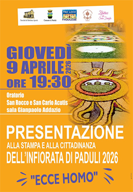 Ne danno notizia don Enrico Francesco Iuliano, parroco di Paduli, il sindaco Domenico Vessichelli, il priore della Confraternita del Santissimo Sacramento, Antonietta Truglia, e il presidente della Pro loco Padulese, Raffaele Marmorale,