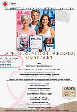 Per questo l'Ordine dei Medici ha organizzato un appuntamento per giovedì prossimo, 16 aprile, alle 17.00, nella propria sede al viale Mellusi che verterà sul tema: "La promozione degli screening oncologici gratuiti ai cittadini di Benevento e del Sannio".