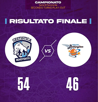 La Cestistica Benevento si è imposta con il punteggio di 54-46 nella Gara 2 del primo turno dei play-out contro la Polisportiva Battipaglia, conquistando la permanenza nel campionato di Serie B femminile.