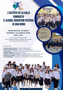 Interverranno il sindaco Clemente Mastella, il gestore dell'Istituto de La Salle. don Donato D'Agostino, il coordinatore delle attività educative e didattiche, Angela Meola, il referente del progetto Adriana Damiano, l'assessore alla Cultura, Antonella Tartaglia Polcini, il consigliere delegato all'Istruzione, Marcello Palladino, e l'assessore alle Attività Produttive, Luigi Ambrosone.