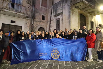 I vicoli del borgo si sono animati grazie al gruppo di lettura 'A Voria, che ha dato vita a un percorso sensoriale tra i celebri murales, la maestosità di Palazzo Gambacorta e il misticismo dell'Eremo di San Michele, trasformando i luoghi storici in testimoni vivi del messaggio rotariano.