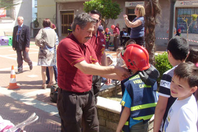I bambini hanno indossato protezioni di sicurezza come quelle dei Vigili del Fuoco, un elmetto ed una pettorina, e, al termine del percorso, con un idrante hanno spento un vero incendio.